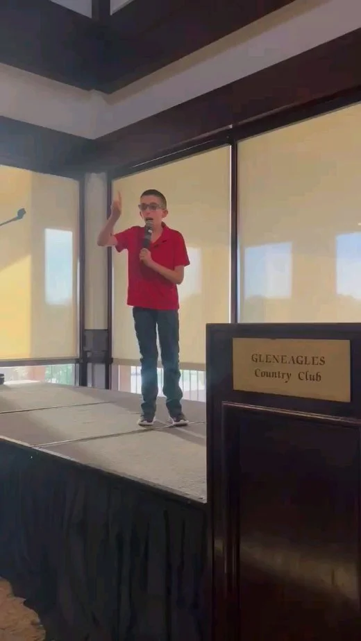 Our final performance of the evening was by Clayton Iburg! He loves music and sports. He has been taking music lessons with Sound Starts Music for almost a decade and loves singing and playing piano and guitar. He is an athlete with the Miracle League of Frisco, playing a variety of sports, and volunteers with them. He also helps out other special needs kids with the Kiwanis Halo league in McKinney on Wednesday evenings. He loves to help others and hopes to work within the special needs community after high school.
